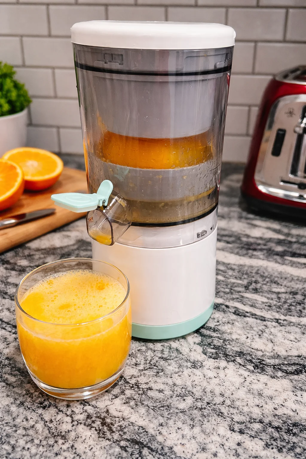 I honestly didn’t expect much from a portable juicer, but this one surprised me. It squeezed a medium orange in about 20 seconds and got almost all the juice out.